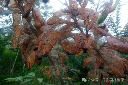 4月下旬至6月下旬、6下旬至8月中旬、8月下至9月上旬是美國白蛾的幼蟲發(fā)生危害期。此時,美國白蛾幼蟲有群集和吐絲結網(wǎng)綴葉的習性,此時通過觀察并用高枝剪及時剪除美國白蛾幼蟲網(wǎng)幕及危害的枝條,可消滅蟲源達到防治的效果。剪下的枝及網(wǎng)幕要裝于塑料紡織袋中,集中燒毀。