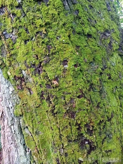 苔蘚形成灰綠色污斑,破壞硬質(zhì)景觀整潔度;古樹名木樹干上附生苔蘚加速樹皮腐朽(尤其松柏類)。