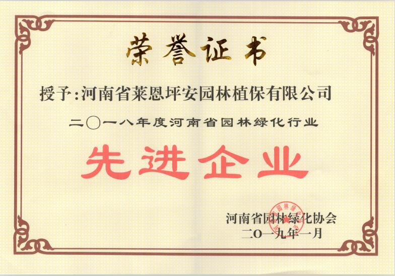 2018年度河南省園林綠化行業(yè)先進(jìn)企業(yè)