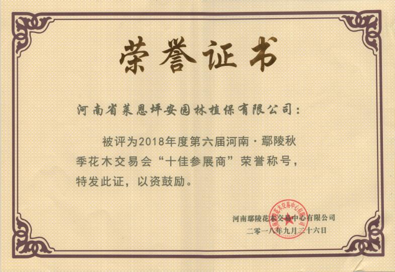 2018年度第六屆河南鄢陵秋季苗木交流會(huì)十佳參展商